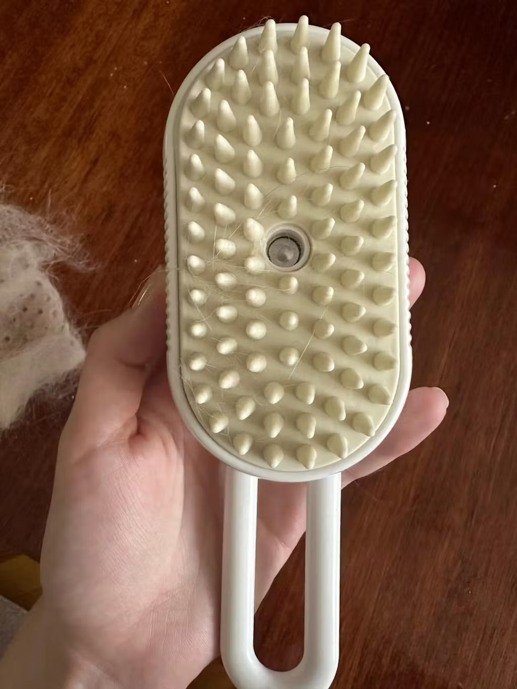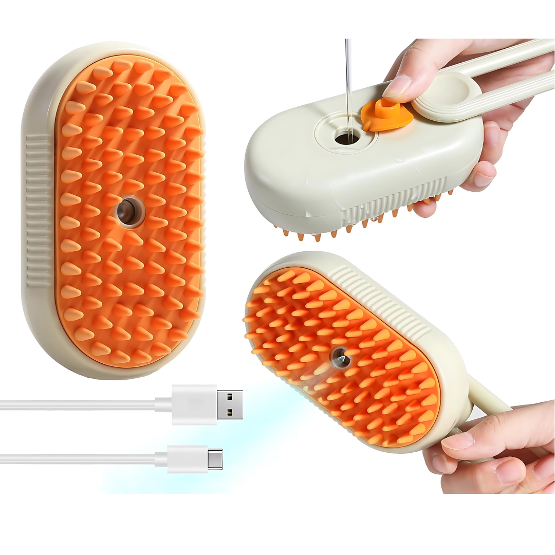 El Cepillo a Vapor para Mascotas no solo elimina el exceso de pelo, también hidrata con vapor y masajea con sus suaves cerdas de silicona.