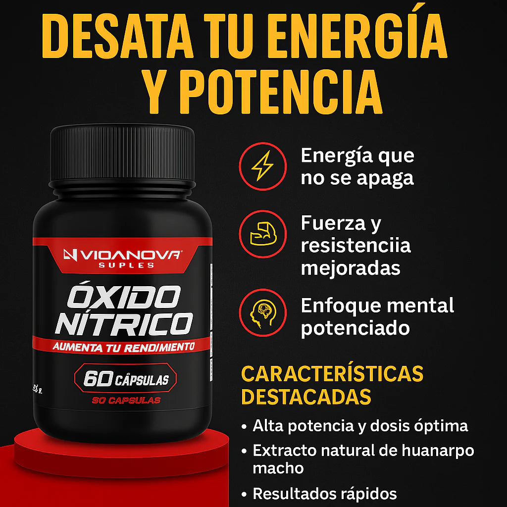 El Óxido Nítrico estimula la vasodilatación, mejora el flujo sanguíneo y oxigena tus músculos al máximo 🔄. ¿El resultado? Más energía, más bombeo y mejor recuperación.